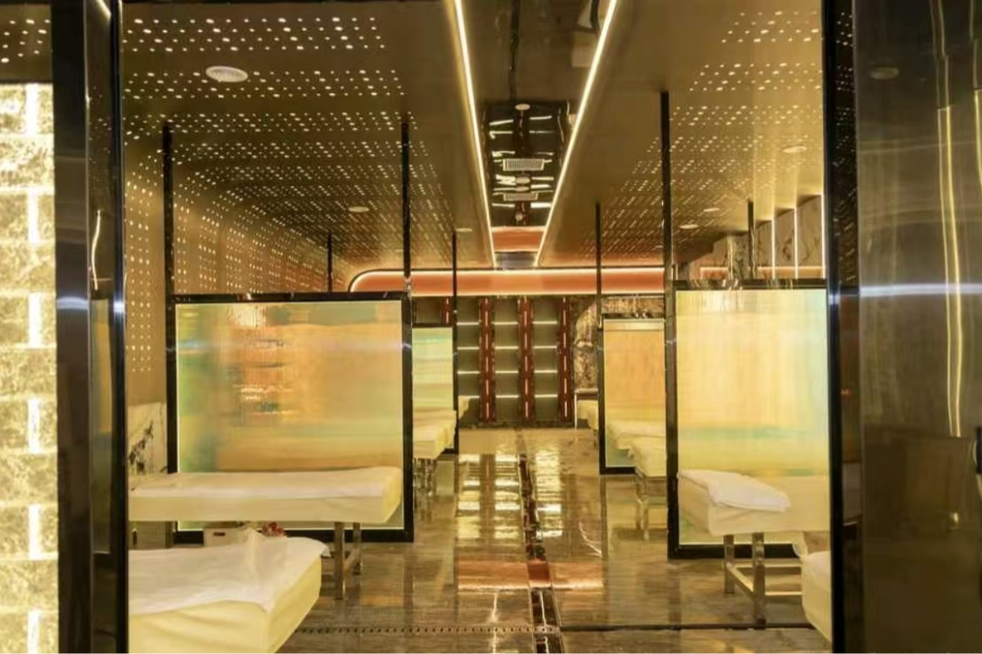 集住宿、洗浴、餐饮于一体的大型休闲场所,装修豪华大气,空间宽敞通透。房间设施齐全,床品柔软亲肤,住店即可免费享受温泉设施,泡走一身寒气与疲惫。每日还会供应新鲜水果,细节处尽显贴心,适合注重住宿舒适度、想沉浸式放松的游客。