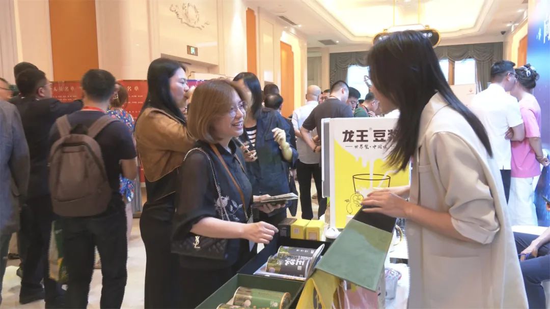 在活动现场,农垦龙王食品有限公司展台前豆香四溢,人气爆棚,氛围热烈,过往客商竞相品鉴,浓香醇厚、味道纯正的豆浆引得各地客商纷纷点赞。