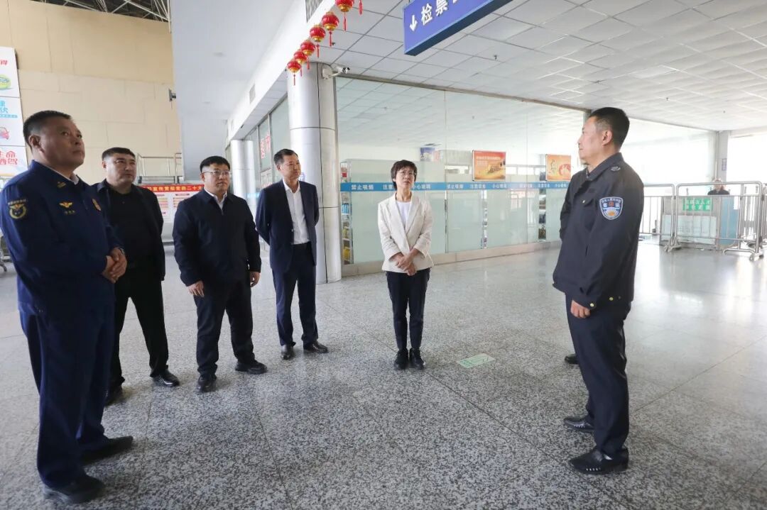 在绥化市客运枢纽站,单伟红详细了解客流量以及节日期间运力安排等情况,听取相关汇报。