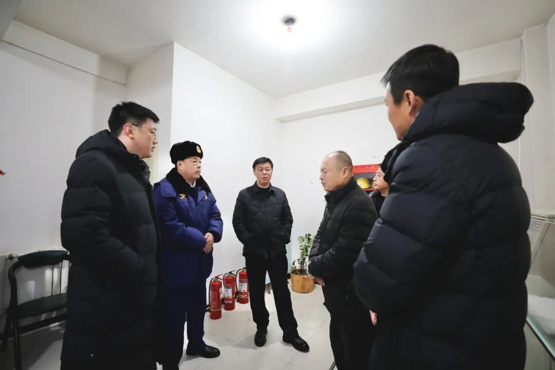 在祥和大厦,张铁峰重点检查灭火器、消防栓等消防设施配备与维护情况,并详细了解应急预案制定工作。