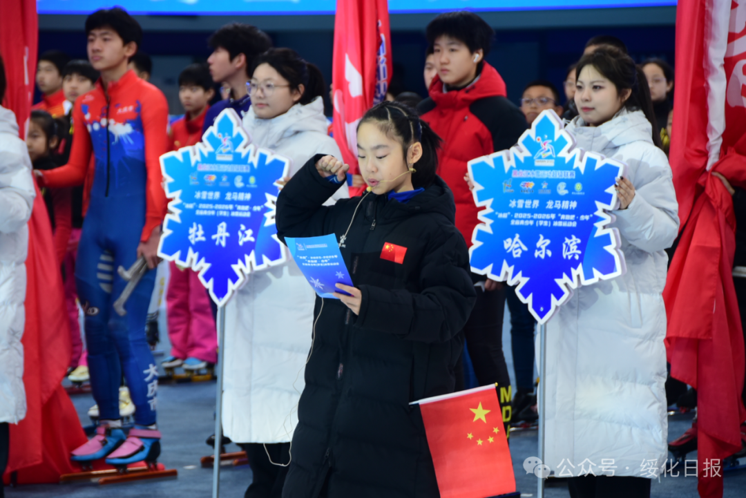 1月17日上午10时,由黑龙江省体育局、省教育厅联合主办,绥化市人民政府承办的首届黑龙江冰雪运动超级联赛2025—2026年“奔跑吧·少年”全省青少年(学生)冰雪运动会开幕式在绥化市滑冰馆举行。