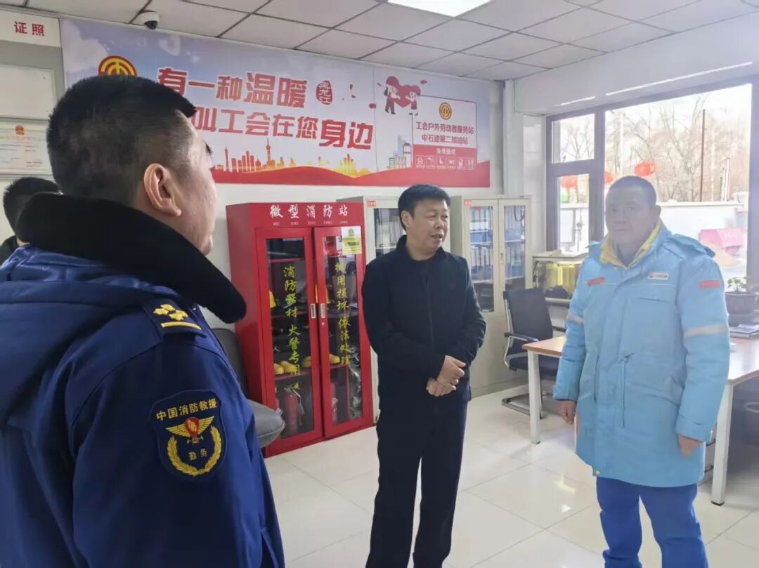 张铁峰先后深入大尚户烤肉店、如家酒店管理有限公司、华辰超市(靖宇店)、绥化市祥和公交公司、中国石油绥化销售分公司第二加油站,实地察看消防设施配备与运行、安全出口畅通情况,详细询问节日期间人员值守、客流管控及应急预案落实情况,听取相关工作汇报。