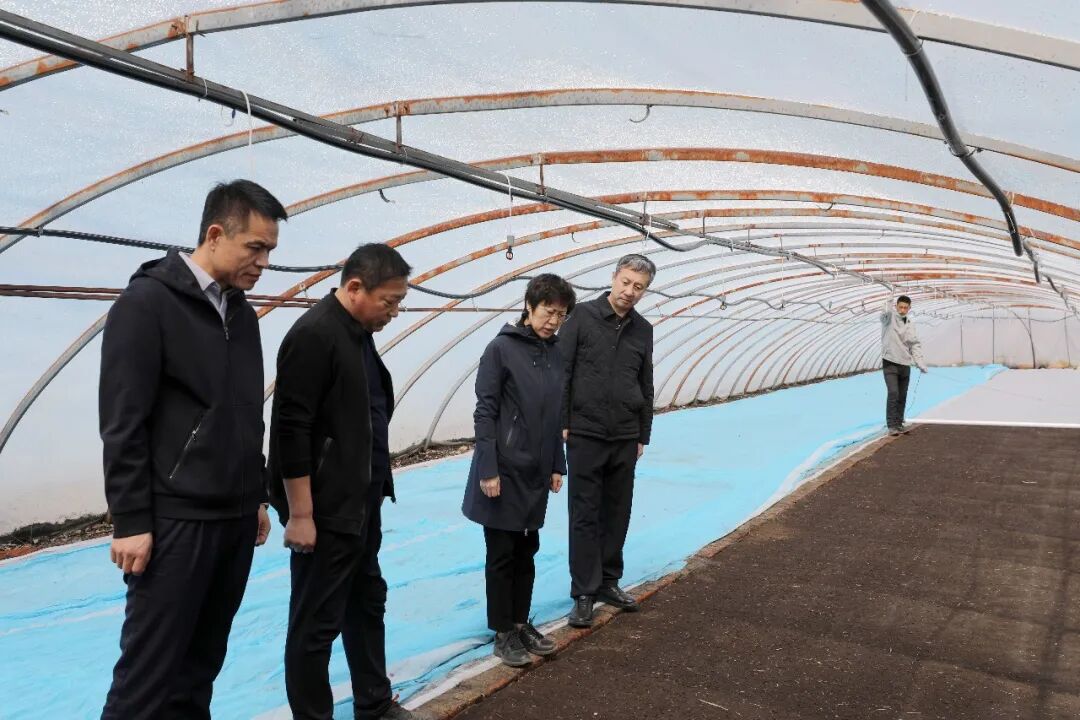 在张维镇民祥村水稻育苗大棚,单伟红实地察看水稻育苗进度,听取备春耕生产相关情况汇报。
