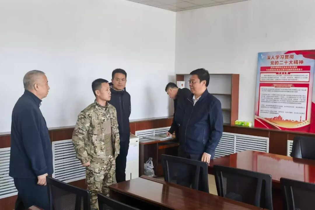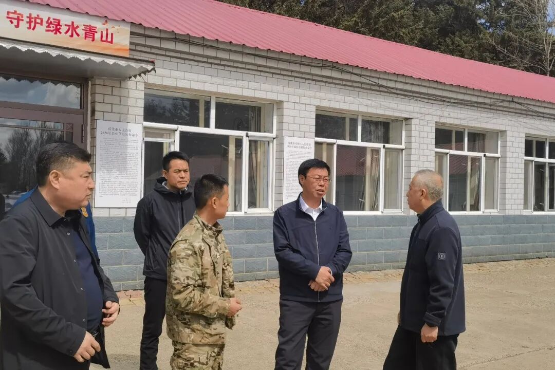 在北林区国有林场,张铁峰实地察看防火物资储备库、装备检修点和林区重点卡口,详细了解物资储备、设备维护、火源管控、巡护巡查、应急值守及防火宣传等各项措施落实情况,现场听取林场负责人关于春季防灭火工作安排情况汇报。
