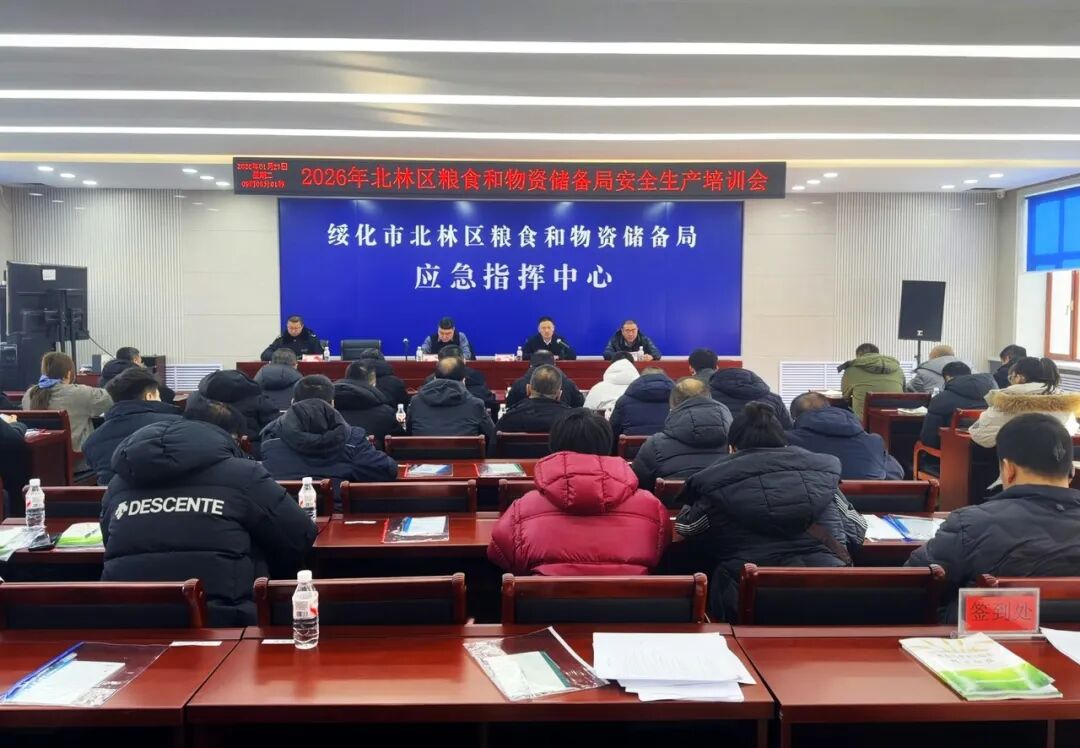 1月27日,北林区粮食和物资储备局开展2026年粮储系统安全生产培训,进一步压实涉粮企业安全生产主体责任,提升行业安全管理水平,有效防范化解各类安全风险隐患。全区各粮食收储、加工企业主要负责人及安全生产管理人员参加培训。