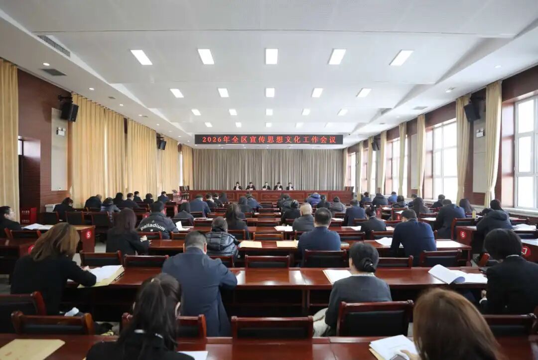 会议指出,2025年,在区委坚强领导下,全区宣传思想文化战线深入学习贯彻习近平文化思想,紧扣举旗帜、聚民心、育新人、兴文化、展形象使命任务,扎实推进理论武装、新闻宣传、文化惠民、文明建设、舆论阵地巩固提升等重点工作,各项事业取得新进展、新成效。