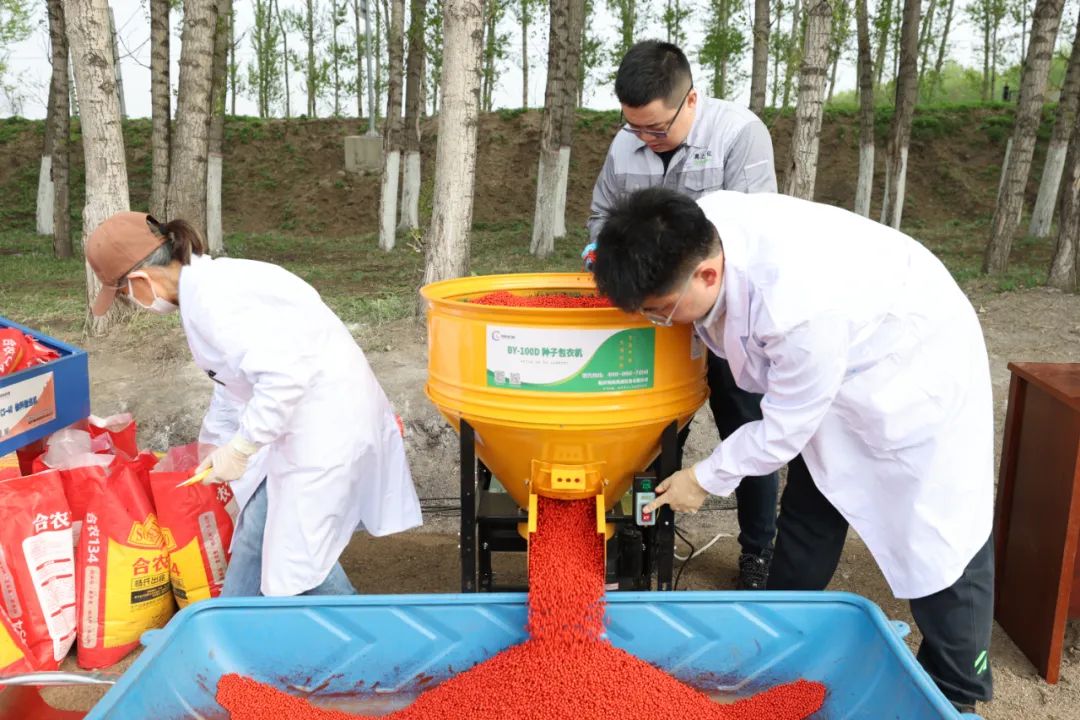 在北林区大豆大面积单产提升示范区,工作人员熟练地操作着设备,金黄的大豆种子源源不断地进入拌种机,经过与精心调配的种衣剂充分混合,一颗颗种子都披上了一层均匀的“防护衣”,为大豆高产稳产和黑土地保护注入新动能。