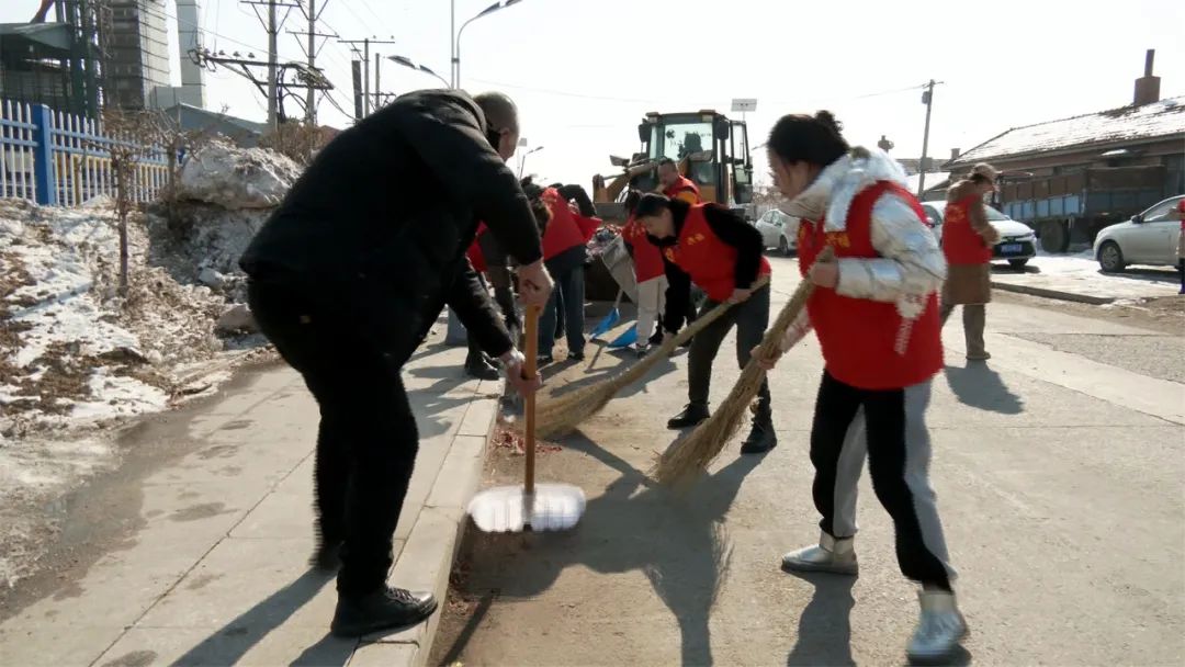 在兴福镇兴福村和民权村,工作人员拿着工具深入镇村主次干道,耐心细致地对主次干道两侧区域周边堆放的生活垃圾、残余冰雪、纸屑等进行彻底清理,通过集中整治清理,道路变得干净整洁,有效提升了村屯环境卫生。